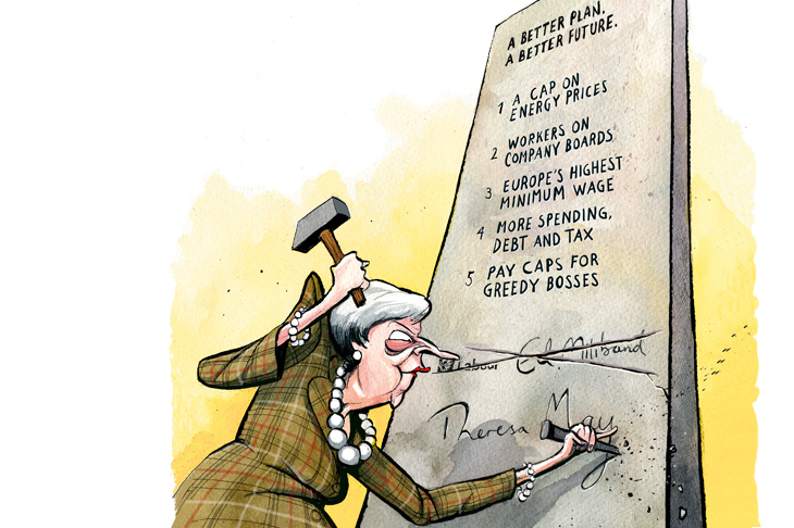 Just two years ago the Tories were denouncing ideas such as an energy price cap as ‘Marxist’. Trying to fix prices, they said, was as naive as trying to legislate for the weather. Now price caps are Conservative party policy. In 2015, Ed Miliband’s plan for an £8 minimum wage was a job-killer that would render unemployed anyone whose skills were worth less than this sum. Now Mrs May is going for £9 an hour. And her published plans involve the tax burden rising to a 35-year high.