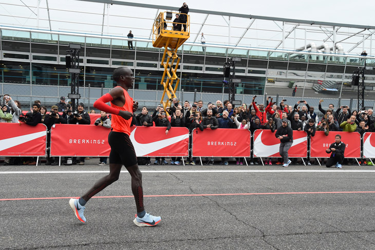 It came tantalisingly close last weekend in an extraordinary project bringing together the millions and the marketing whizz of Nike with the endurance genius of African distance runners. Before sunrise on the flat, gentle course of the Monza motor racing circuit in Italy, three elite runners set off with the aim of breaking two hours. They were shepherded by a squad of equally elite pacemakers who came in and out, running in an arrowhead formation to protect the runners from wind resistance. Just ahead was a Tesla electric car with a giant timer showing the athletes what they had to do. The runners were fuelled by a new sports drink brought to them on mopeds so they didn’t have to slow down. Nike was also trying out a new shoe, the Zoom Vaporfly. There was a lot riding on this race: it wasn’t just any old run.