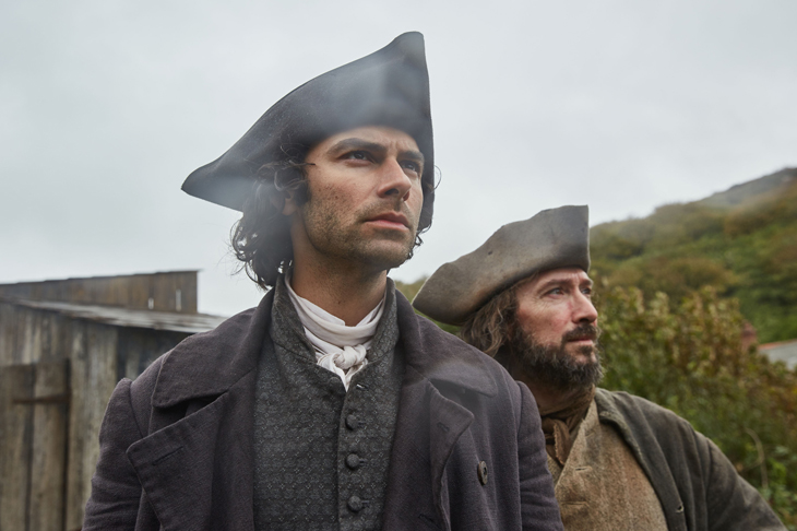 Which just goes to show that Harris Pascoe must never have seen Poldark — because the answer to his question was, of course, ‘Almost everything’. Ross’s wife Demelza could, for example, be summoned, along with her cleavage, to attend her estranged father who lay in bed dying — or ‘a-dying’ as she duly preferred to call it. Ross could also arrange a secret marriage between Caroline Penvenen and Dr Enys, only for both to be dramatically called away on their wedding night: she, to her beloved guardian who was doing some a-dying himself; he, to help Elizabeth Warleggan deliver a baby that we and Ross know is Ross’s rather than horrible husband George’s.