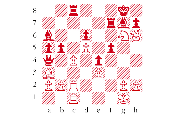 White to play. This is from Wyvill-Williams, London 1851. Can you spot White’s fine winning coup which exploited various tactical weaknesses in the black position? Answers to me at The Spectator by Tuesday 13 June or via email to victoria@spectator.co.uk. There is a prize of £20 for the first correct answer out of a hat. Please include a postal address and allow six weeks for prize delivery.