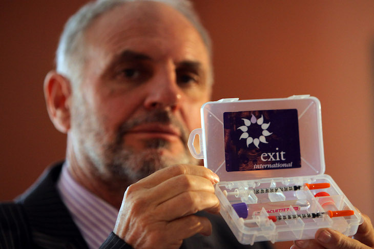 There are 80 or so men and women, grey-haired and crepe-soled. They arrive on each other’s arms and with walking aids. A mobility scooter does a three-point turn in the narrow corridor. Philip Nitschke sits at the front with a laptop and a screen, ready to embark upon his specialist topics — hypoxic death, poisons, barbiturates, the legal issues and the ‘Swiss options’.