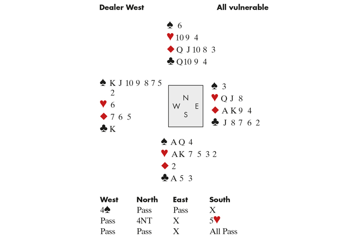 East, who related the hand, said that at the time they just couldn’t get a break. Doubly annoying for them was that if either North’s ♦8 or ♣9 had been a small card, the defence could have prevailed by giving dummy a cheap trick in one of the minors while keeping control.