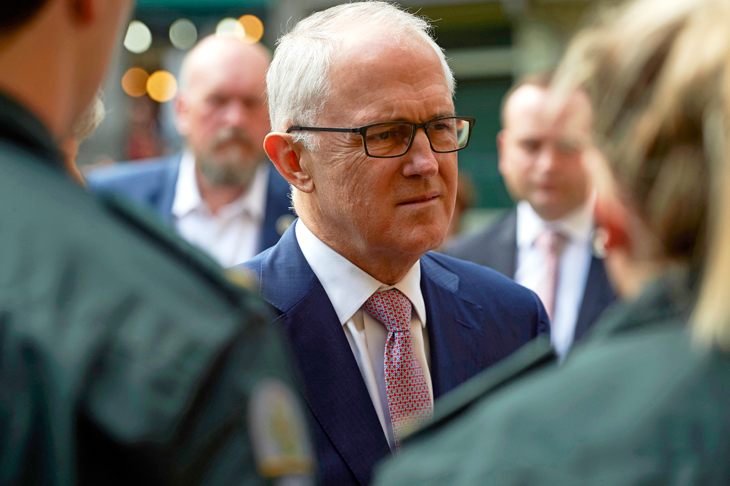 Having eschewed labels, Turnbull claimed for himself ‘the sensible centre’, and described the Liberal Party, by reference to founder Robert Menzies, as a ‘party of progress’, born at a time when classical liberalism was ‘out of fashion’. Nonetheless, he went on, the lodestar of his party has always been freedom, ‘based in a deep, instinctive respect for the dignity and worth of every individual’. For Turnbull, Australia is a nation united by universal political values, like democracy and the rule of law, and these stand apart from ‘religion and tradition’. In the defence of this vision ‘there is no space for the mush of moral relativism’ because ‘in order to be free a person must first be safe’.