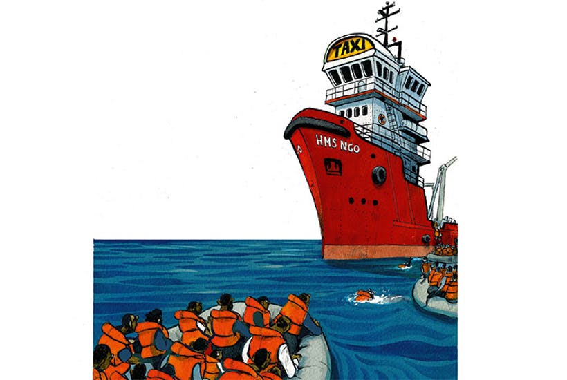 The NGOs are now under investigation by Sicilian magistrates for possible collusion with people smugglers. Carmelo Zuccaro, the magistrate in charge, told the Turin daily La Stampa in April: ‘We have evidence that there are direct contacts between certain NGOs and people traffickers in Libya.’ He says phone calls have been made from Libya to certain NGOs, lamps have been lit to illuminate the route to these organisations’ boats, and some of these boats have suddenly turned off their locating transponders.