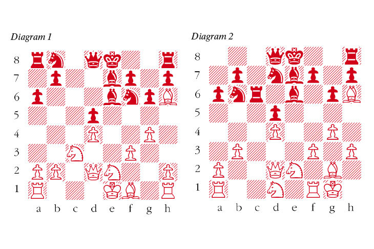 1 c4 e6 2 Nc3 d5 3 d4 Be7 4 cxd5 exd5 5 Bf4 c6 6 Qc2 Kasparov challenges Short with an unusual idea. 6 e3 is most common, after which Black develops with 6 … Bf5. 6 … g6 Black plans … Bc8-f5, gaining a move. However, Kasparov is happy to allow this possibility. 7 e3 Bf5 8 Qd2 An odd idea, but very interesting nevertheless. Now it is White who hopes to gain time, intending to attack the Bishop on f5 with his advancing kingside pawns. 8 … Nf6 9 f3 c5 A correct move, trying to open up the position with the White pieces on slightly odd squares. 10 Bh6 cxd4 11 exd4 a6 12 g4 Be6 13 Nge2 (see diagram 1) It is suddenly much easier to handle the White position. White has the clear plan of Bg2, 0-0, Rae1 and a kingside pawn storm. Black is struggling to coordinate. 13 … Nbd7 13 … Nc6 14 Bg2 Bf8 15 0-0 Bxh6 16 Qxh6 Qd6 puts up better resistance. I am not sure why Short plays his knight to d7, which is passive by comparison. 14 Bg2 Nb6 15 b3 Carefully cutting out counterplay based on … Nc4. 15 … Rc8 16 0-0 Rc6 17 h3 Nfd7 18 Nd1 (see diagram 2) 18 … Rg8 Black plays as though intimidated. 18 … Bf8 was a better defensive attempt when play can continue 19 Nf2 Bxh6 20 Qxh6 Qf6 21 Rfc1 Nb8 22 f4 and White is better. 19 Nf2 f5 20 Rae1 g5 This looks suicidal. 21 gxf5 Bf7 21 … Bxf5 is answered by 22 Ng3 Be6 23 Nh5 Nf8 24 Nd3. 22 Ng4 Bh5 23 Ng3 Black resigns 23 … Bxg4 is answered by the crushing 24 Bxg5.