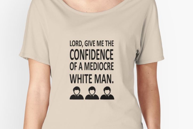 “Give me the confidence of a mediocre white man” one reads.