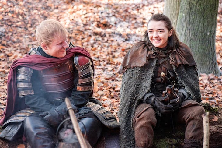 The reason Sheeran’s cameo didn’t work is because it broke the fourth wall. It was a rare moment of knowingness in an otherwise relentlessly unironic series. Game of Thrones doesn’t send itself up, which is just as well, because so much of it is plainly ridiculous, with its dragons, dwarves and giants. It requires a greater suspension of disbelief than other TV shows and that may be why viewers become so invested in it. Its straight-faced portentousness —‘Winter is coming!’ — is what makes it so compulsive.