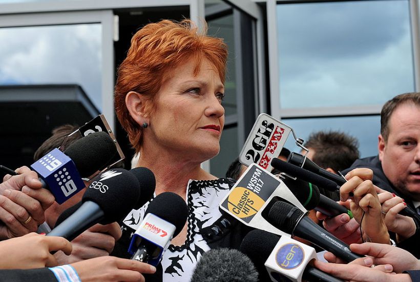 This how Hanson operates. She makes extreme statements, the mainstream parties condemn her, and she retreats into victimhood, shouted down by the elites for telling it like it is. There are a great many Aussies who see Hanson for what she is but those sympathetic to her do not necessarily share her views. She is a beneficiary of that noble Aussie tradition, the fair go. Some see establishment Canberra — pollies, journos, and the rest — ganging up on this plainspoken, syntax-jumbling battler granny and can’t suppress an ‘onya, Pauline’.