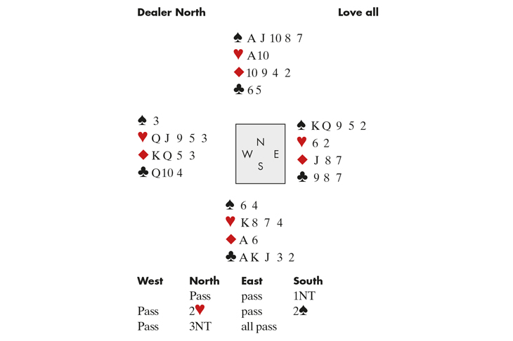 Everyone was in the same contract and everyone I spoke to had the same lead of the ♥Q. Most declarers, wanting to preserve the precious entry to the Spade suit, won the first heart in hand and led a Spade to dummy. Calamity! East won and played another Heart and now, whatever he does, declarer can make only eight tricks. ‘Bad luck, partner,’ sympathised East. ‘Nothing to be done.’ Really? At the other table, Artur won the heart lead in dummy and took the losing club finesse. West innocently continued with the♥J, pinning the 10, which Declarer won and played♥8 establishing the♥7 for his ninth trick! Say what you like — the boy done good.