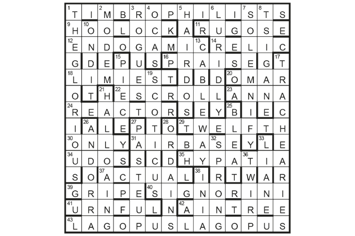 The event was THE GLORIOUS TWELFTH (1D/29) (12 August, opening day of the grouse-shooting season). Remaining unclued lights bring to mind ‘grouse’: LAGOPUS LAGOPUS SCOTICUS (43/19: scientific name); RUGOSE and ROGUES (11 and 3: anagrams); GRIPE and BLEAT (39 and 25: synonyms).
