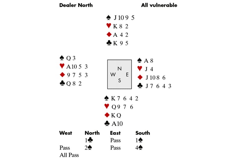 Some of the better players had another plan: they took their two Diamonds, played Ace and King of Clubs, cashed the ♦Ace and ruffed a Club in hand. With the minors eliminated, it was time to lead the ♠King from hand. East wins, but whether he opens up Hearts now or puts his partner in with the ♠Queen, the contract will make.