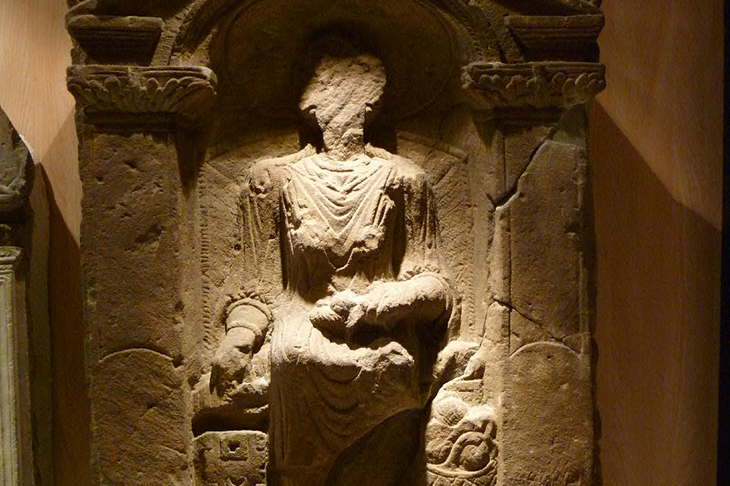 There Regina sits, in all her Roman finery. You cannot make out her face because the great stone funerary monument in which she has been sculpted is 1,800 years old, very worn in places and the face mutilated. She looks straight out at you from her wicker basket-chair — a nursing chair, perhaps? Uncomfortable, too: she sits on a cushion.