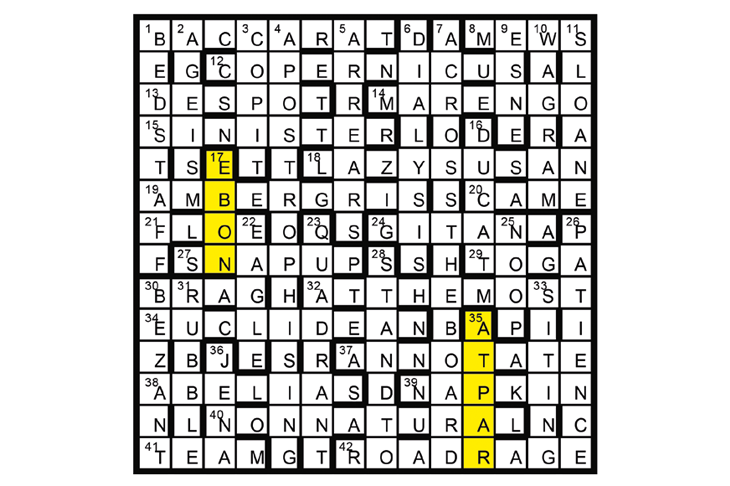 Links with NAPOLEON were his battles WAGRAM (10) MARENGO (14) JENA (36); card games BACCARAT (1A) PATIENCE (26) BRAG (30A); and gold coins DUCAT (16) EAGLE (22) BEZANT (30D). EBON (17) and AT PAR (35) made BONAPARTE. Millefeuille/Napoleon are cream cakes.