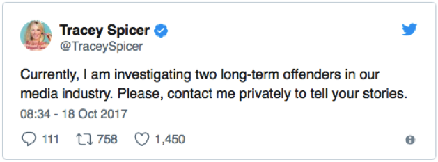Spicer has stated that more than 500 women have come forward so far with accusations against 65 men. (It looks like she is running the office of the special prosecutor and her own AFP unit combined) She has exonerated them from not taking their complaints to the appropriate legal authorities stating: “These women have internalised society’s misogyny – a culture of victim shaming and blaming. Of course, the only ones responsible are the perpetrators and power brokers.”