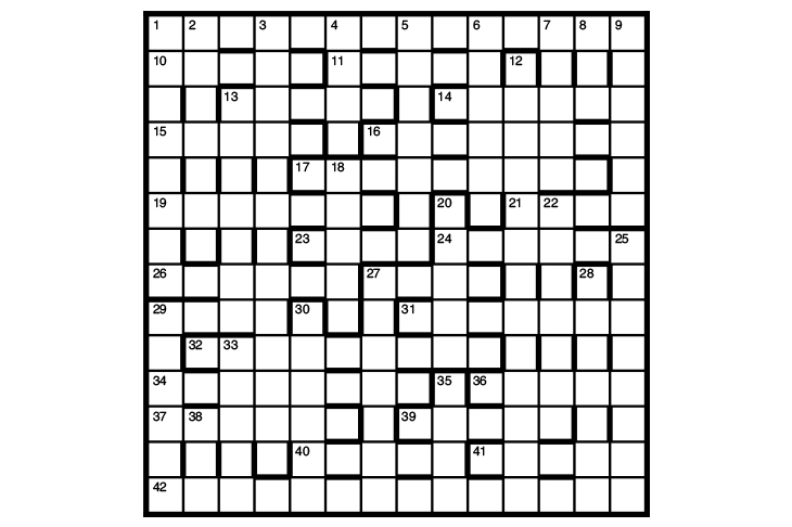 A first prize of £30 for the first correct solution opened on 22 January. There are two runners-up prizes of £20. (UK solvers can choose to receive the latest edition of the Chambers dictionary instead of cash — ring the word ‘dictionary’.) Entries to: Crossword 2340, The Spectator, 22 Old Queen Street, London SW1H 9HP. Please allow six weeks for prize delivery.