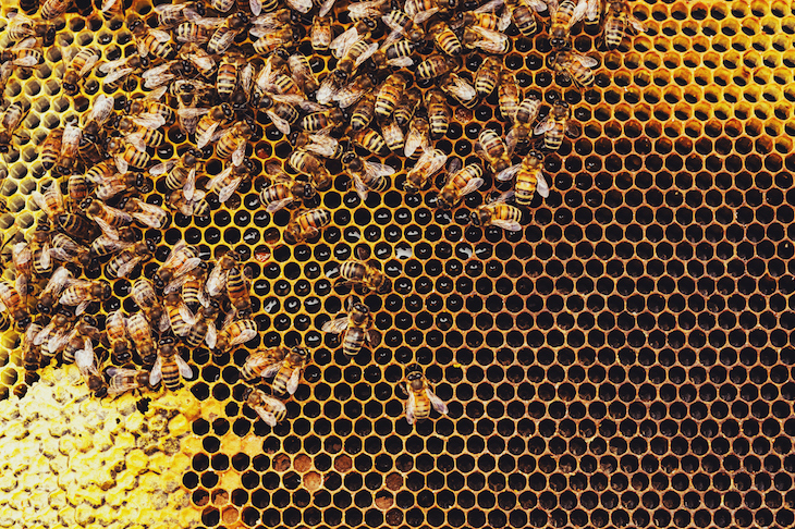 First comes a distant hum, rising in volume until I hear it coming straight at me like Niki Lauda behind the wheel of his Ferrari. The blue sky darkens. I duck as swarming bees zoom overhead, trailing their queen. They are gone again in a second, coiling off in a shadowy murmuration across the veldt. After the rains, several swarms hurtle over us daily looking for homes, criss-crossing in the air.