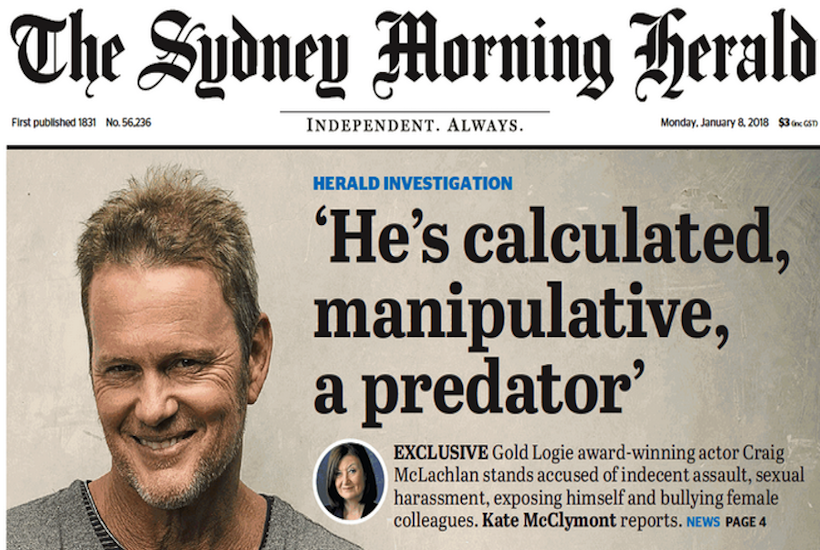 But in this clickbait age — and this is the deliberate part — Fairfax is picking lowest common denominator targets for its mob. They have to maximise the eyeballs, after all. So the front page is given over to flinging accusations at a figure whose greatest public acclaim came as a second-string star to Kylie and Jason on Neighbours a generation ago — with their top investigative reporter Kate McClymont acting as their Betty Parris.