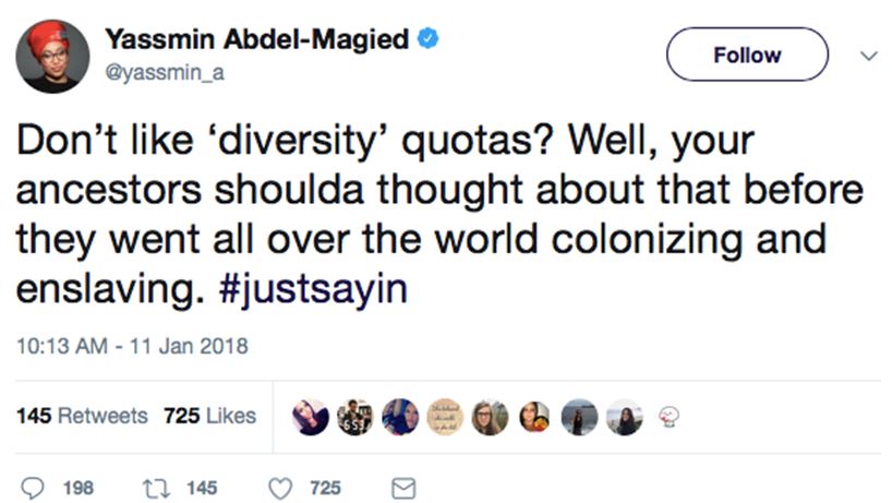 Abdel-Magied’s lack of cultural, and in particular self, awareness is truly gobsmacking. Of all the major religions on earth, Islam has done more “colonising” and “enslaving”, than any other. Don’t expect to find any ‘diversity quotas’ when a Caliphate has been established! As one Twitter follower was quick to point out: