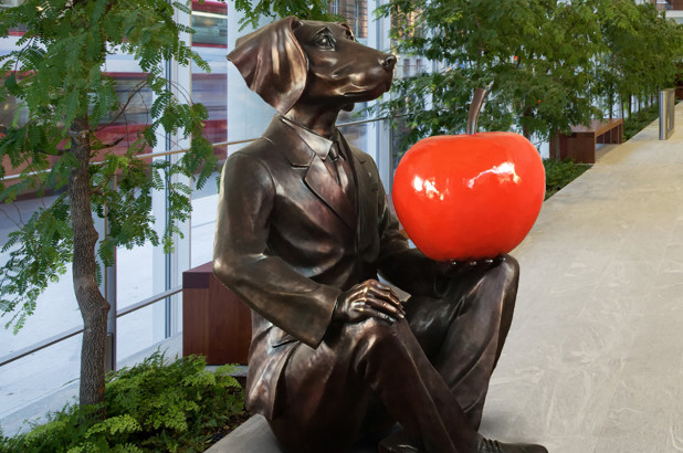 They are as immobile and inarticulate as Dog Man with his suit, strange human body and giant red apple.