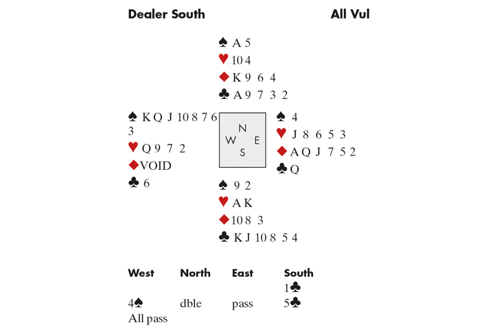West led ♠K which Glyn took with dummy’s Ace. He drew trump (1-1) and cashed the Ace and King of hearts, eliminating that suit. Feeling rather pleased with the way things were going he confidently advanced the 8 (check out the pips) and… ouch! But as every boy scout knows giving up is not an option. East took his Jack — but was caught in the famous double endplay: he exited a heart (best) but declarer ruffed in dummy and discarded 3 in hand. Now the stage was set — he advanced the 10 which East won with his Queen (see the importance of discarding the 3 now??) but was endplayed again. He had the uncomfortable choice of giving another ruff and discard or establishing dummy’s King. Contract made. Well done everyone.