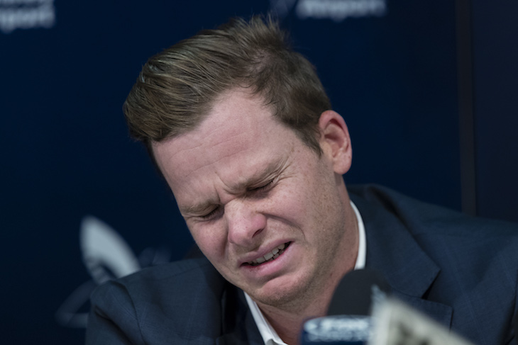 The whole Greek drama of the fall of Smith, Warner, Bancroft and Lehmann began last year with the hubris of Nathan Lyon, otherwise seemingly an agreeable bloke, bragging before the Ashes about ‘ending the careers of English players’, hotly followed by the smirking, adolescent behaviour of Smith and Bancroft at a press conference after the Australians had stitched up Jonny Bairstow over the headbutt non-incident. The southern hemisphere summer now ends with several Aussie careers on the line, if not wrecked; a bewildering amount of tears; and a once mighty team blown apart by the South Africans. We Poms must be forgiven for just a trace of schadenfreude.