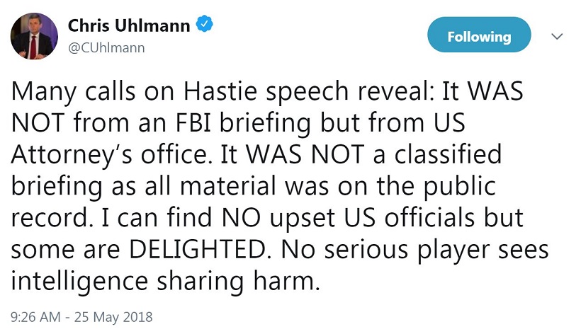 Hastie is a stand-out a patriot and soldier, qualities deeply ingrained in the American psyche. So who better to deliver a warning, passed on by an ally, of the danger of foreign interference?