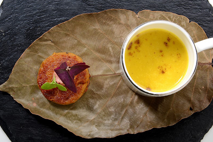 We are given, first, pumpkin and coconut soup in a small black cup, with a naan bread, the tiniest I have seen, a naan bread for Borrowers or ants, stuffed with blue cheese. It is delicious, and I eat it so swiftly they bring another, unasked. Then comes meetha achaar ribs with sun-dried mango and onion seeds, fantastic, so sticky; potato sphere chaat with white pea mash, which falls apart gloriously; chicken kofta with punjabi kadhi and onion pakora; and deep, rich ghee roast lamb with tiny roomali roti pancakes. This is not fusion, or molecular gastronomy, or pig’s bladder, or any profound weirdness — the usual highways to the World’s 50 Best Restaurants List, sponsored by S. Pellegrino and Acqua Panna. This is imagination, taste and feeling. I am not used to leaving an Indian restaurant without being felled by my own greed, but Mehrotra’s subtlety has enchanted me. I do not eat too much, and that is notable.