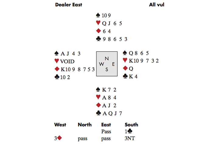 Szegedi wasn’t given much room in the bidding, and it looked like he had an uphill struggle ahead. Donati led ♦10 to the Queen and Ace. Declarer tried to enter dummy with a heart, West discarding ♦8, suit preference for spades. If Duboin plays any spade now the contract is toast (♠Q takes it 2 down) but he decided, after a long tank, that a heart exit would be safe. Not this time! Szegedi won in dummy, took the club finesse and cashed all his winners, keeping a beady eye on West’s discards — Donati held on to two spades and two diamonds. Declarer returned to hand with ♥Ace and now threw West in with a diamond — endplaying him to make the ♠K for his 9th trick and a very elegant +600.