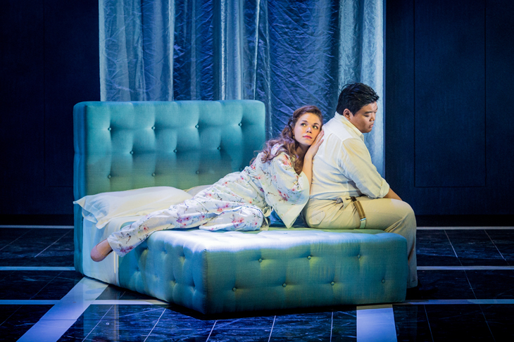 That doesn’t leave much room for John Copley’s new staging of The Abduction from the Seraglio, which is merciful because colleagues tell me he’s a national treasure, and no one wants to blame a national treasure for wobbly sets, drab lighting and a representation of Islamic culture that, with its funny hats, pointy slippers and perma-smiling harem girls, had all the sensitivity of an ITV production of Ali Baba, circa 1978. The cast seemed uncomfortable with the spoken dialogue (the English translation was embarrassingly dated). Only Jonathan Lemalu — playing Osmin as a teddy bear, but singing nobly — and the comic couple of Pedrillo (Paul Curievici) and Blonde (Daisy Brown) really seemed to be enjoying themselves, though Kiandra Howarth, as Konstanze, won cheers for ‘Martern aller Arten’.