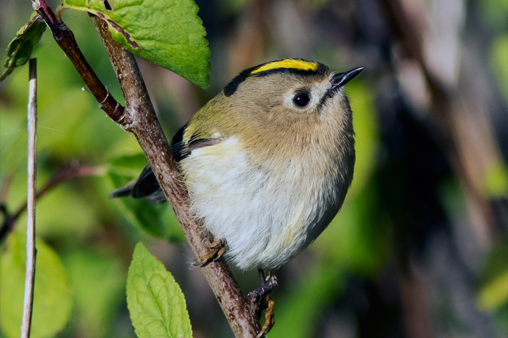They feed between the pine-fronds in conifers, tiny birds subsisting on even tinier scraps of life. They wear a dashing Mohican haircut, and the crest shines pure gold when it catches the light. But they are hard birds to see, loving the forest canopy: if you want to find them, you need your ears.
