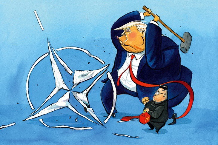 Ivo Daalder, a former US ambassador to Nato, has been frank about what Trump’s conflation of trade and defence means for Nato. ‘The lifeblood of the alliance is trust,’ he said recently. ‘So a trade dispute based on national security — that’s what hurts.’