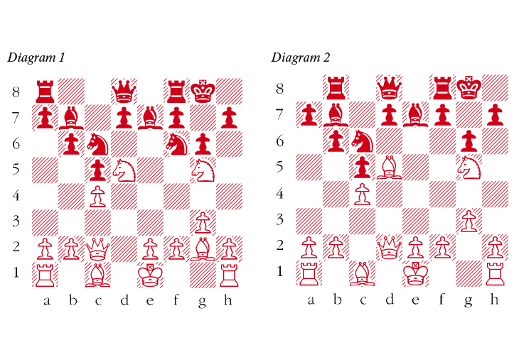 1 d4 Nf6 2 Nf3 e6 3 g3 b6 4 Bg2 Bb7 5 c4 Be7 6 Nc3 0-0 7 Qc2 c5 8 d5 exd5 9 Ng5 Nc6 In an earlier game from the match Karpov had tried 9 … g6, but it is not clear that his move here is any improvement. 10 Nxd5 g6 (see diagram 1) 11 Qd2 The most effective method of transferring the queen towards the dark-squared weaknesses around the black king. 11 … Nxd5 This is a weak move. Admittedly, White’s knight was strong on this square but the bishop proves to be even more effective. Much better was either 11 … Rb8 or 11 … Na5. 12 Bxd5 Rb8 Karpov completely overlooks White’s main intention. He could instead have gone in for liquidation with 12 … Bxg5 13 Qxg5 Qxg5 14 Bxg5 but the endgame would be much better for White. 12 … Bf6 is also possible but White has a strong attack after 13 h4 (see diagram 2) 13 Nxh7 Re8 Tantamount to resignation but the acceptance of the sacrifice is also hopeless, e.g. 13 … Kxh7 14 Qh6+ Kg8 15 Qxg6+ Kh8 16 Qh5+ Kg8 17 Be4 f5 18 Bd5+ and Black will be mated. 14 Qh6 Ne5 15 Ng5 Bxg5 16 Bxg5 Qxg5 17 Qxg5 Bxd5 With the threat of … Nf3+ which White brushes aside by castling. 18 0-0 Bxc4 19 f4 Black resigns