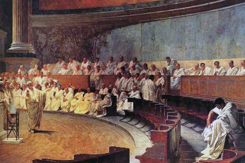 Illustration: Cesare Maccari, Cicero denouncing the conspirator Catiline, Palazzo Madama, Rome.