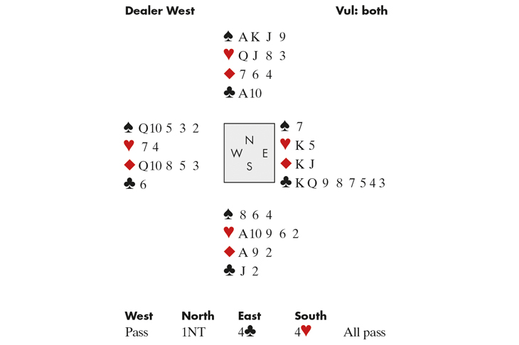 I won, finessed the ♠J, and pitched a club on the ♠K. Now I ruffed a club, and exited with a diamond. At this point, Lucy made an understandable error: she automatically played low, instead of rising with the ♦Q. John had to win with his ♦J — and now came a club for 12 tricks. Lucy began to apologise, but John was having none of it. ‘I’m so sorry,’ he said. ‘What was I thinking? I should have discarded my ♦J on a spade.’