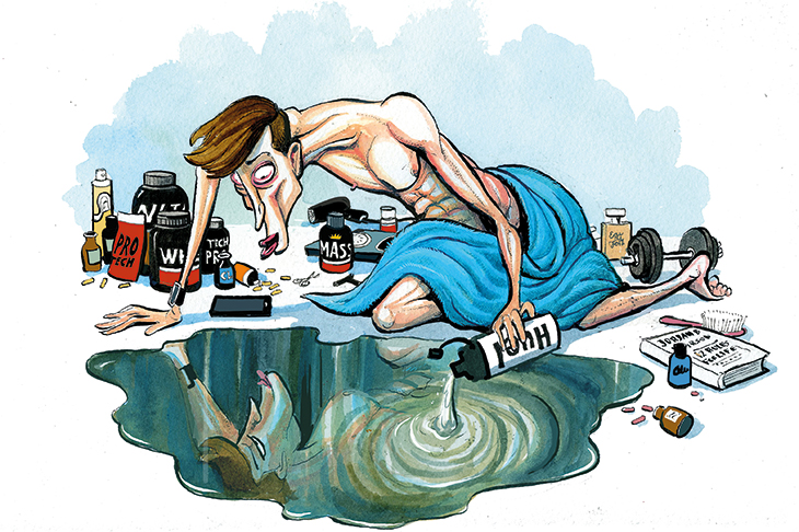 There is a dark side to the modern male fixation on intensive self-improvement and ethical dieting. In July last year, the NHS reported a 70 per cent rise in adult men being admitted to hospital with an eating disorder. Around the same time, it was revealed that steroid use had quadrupled. Up to a million people in the UK now take anabolic steroids in order to make themselves look more muscular — and one in ten men who go to a gym are thought to have ‘muscle dysmorphia’: the neurotic belief that their bodies are insufficiently toned.