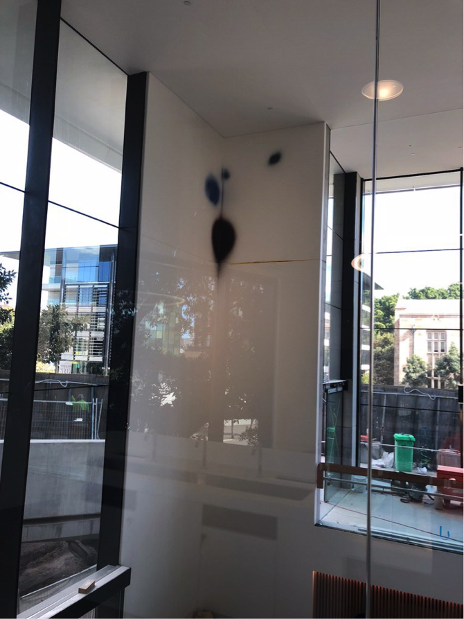 No, those black splotches are not mould. And nor is the horizontal yellow line a urine stain. According to Sydney University, this is a $200,000 piece of art. When I was told me how much it cost, I couldn’t believe it. So, I personally contacted the Media Department at Sydney University (part of its bloated bureaucracy, not like the Department of Science). Initially, they had no idea what I was referring too. But by the end of the week, I received the following reply, delivered with a straight face: