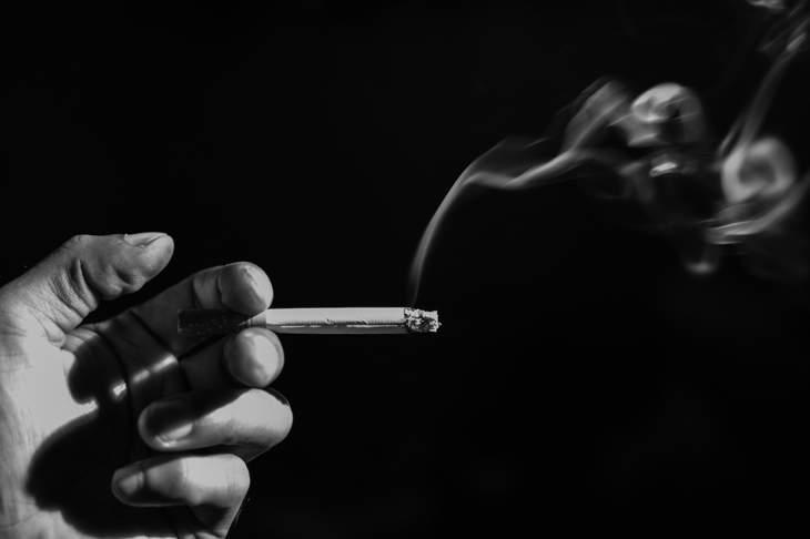 As soon as I got off my plane back from the States, I made for Gatwick’s tiny smoking area. I got into conversation with an elderly chap who told me proudly, as he lit his fag, that he had been smoking since he was 13. ‘Good for you!’ I cheered. ‘And all well now?’ His face fell a little. ‘Well, I have lung cancer and emphysema. But there we are.’