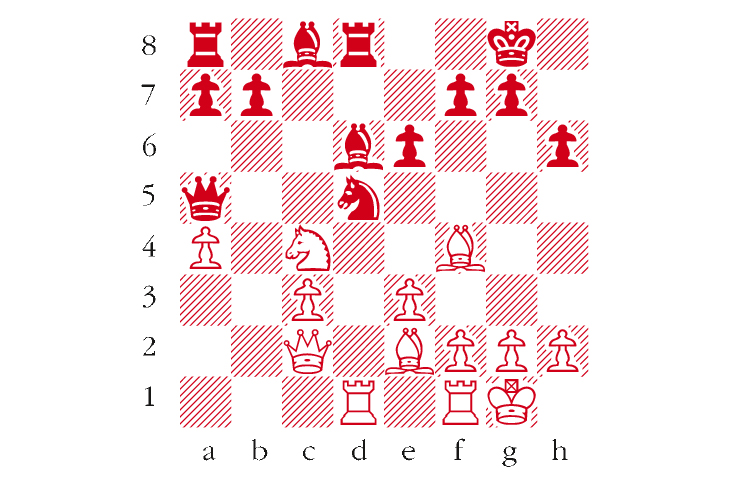 Black to play. This is a variation from Carlsen–Caruana (Game 2), London 2018. White has forked the black bishop and queen. How should Black react? Answers to me at The Spectator by Tuesday 20 November or via email to victoria@spectator.co.uk. There is a prize of £20 for the first correct answer out of a hat. Please include a postal address and allow six weeks for prize delivery.
