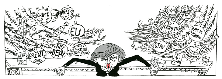 The government was bitten from behind by a Commons motion finding it in contempt of Parliament for failing to publish legal advice it had received on the Brexit withdrawal agreement. So it had to publish it after all. This was the consequence of ‘an humble address’, a Commons motion held to be binding, that had demanded the publication. John Bercow, the Speaker, allowed a debate on the question even though Geoffrey Cox, the Attorney General, had presented to the House a summary document, which included the information: ‘It is not possible under international law for a party to withdraw from the Agreement unilaterally.’ In his thespian baritone, Mr Cox had called the Brexit backstop universally ‘painful’ but worth a gamble. MPs also defeated the government on an amendment by Dominic Grieve allowing the Commons to propose its own plans if the government is defeated on 11 December. On another question, of whether Britain could cancel unilaterally its application to withdraw from the EU (under Article 50), the advocate general of the European Court of Justice gave the opinion that it could; the ECJ will make a ruling in its own time.