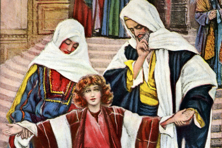 All this puts in context the story of Jesus’s parents’ loss of him on the return from a Passover trip to Jerusalem when he was 12. His parents retraced their steps — enquiring in vain among friends and family on the same journey — and finally found him in the Temple, arguing impressively with learned men. As we have seen, this is what children were encouraged to do. Less impressed, his parents took him back to Nazareth and kept him there ‘in constant obedience/subjection to them’. Jesus was clearly an awkward 12-year-old, and this may have encouraged absurd later apocryphal stories, enormously popular with Christians, about his behaviour as a small boy with all power at his fingertips: those who hurt him dropped down dead, he often rebuked his father and so on (though when he wandered through woods, lions, wolves, panthers and other wild animals bowed reverently and showed him the way). His career as an itinerant preacher based in Capernaum (some think St Peter’s house has been found there) illustrates clearly enough that he continued to be a combative customer, certainly as far as the rich and powerful were concerned.