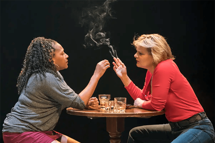 The final moment of this yawn-a-minute soap opera delivers a clever twist, but it’s hardly worth the two-hour wait. Really, this is a short sketch about a bar fight that the garrulous author has stretched out into a slow-motion epic that belongs on TV. I’ve seen plenty of dud plays garlanded with the Pulitzer. This is one of the weakest. The irony is that the script, completed in 2015, now seems fully aligned with Trump’s ‘America First’ agenda. Every one of these characters, including the blacks, would have voted for Trump in 2016. And they’d be lobbying hard to ensure that old ‘Grab-’em-by-the-pussy’ gets re-elected in 2020. The author, Lynn Nottage, is an African-American professor of theatre and she probably finds it rather embarrassing to have written a masterpiece of pro-Trump propaganda.