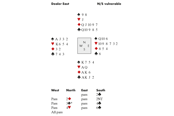My 3♠bid showed both minors and hey presto, we were in slam.
