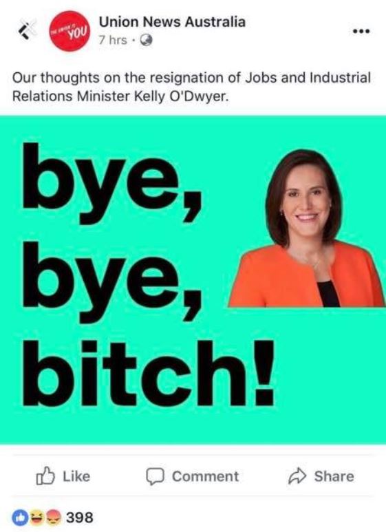 Oh dear. We look forward to the very strong condemnation from Bill Shorten and Sally McManus down — let alone the #MeToo brigade.