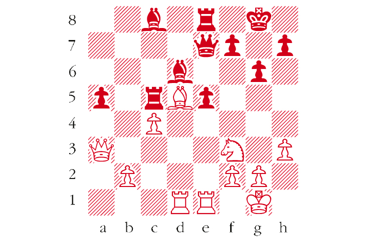 White to play. This position is from Jones-McShane, UK Knockout, London 2018. White’s next move was the start of a clever geometrical combination that wrecked the black position. What did he play? Answers to me at The Spectator by Tuesday 22 January or via email to victoria@spectator.co.uk. There is a prize of £20 for the first correct answer out of a hat. Please include a postal address and allow six weeks for prize delivery.