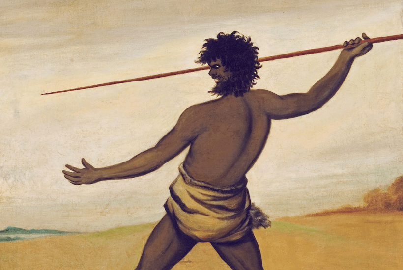 Illustration: Benjamin Duterrau; Timmy, a Tasmanian Aboriginal Throwing a Spear; Wikimedia Commons.