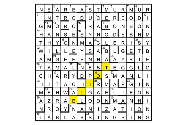 5, 16, 42, 43, 10 and 13. ELIOT (diagonally from the twelfth row) was to be shaded.
