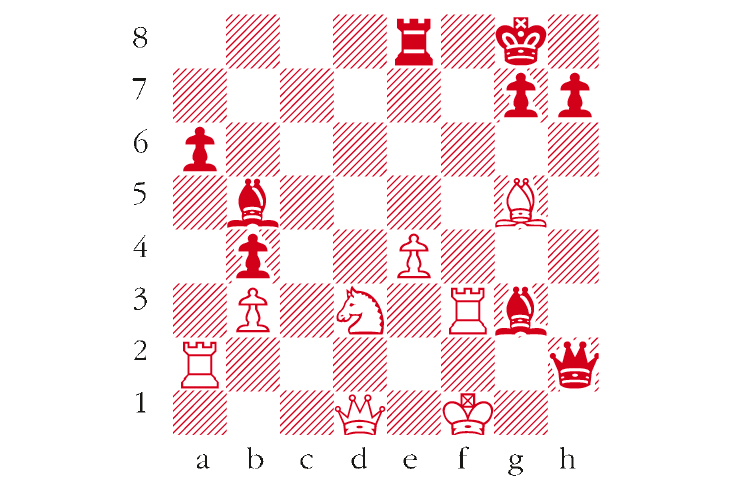 Black to play. This position is from Kasparov-Kramnik, Dos Hermanas 1996. Kramnik played 1 … Qh1+ and soon won. But he could have forced mate here. What is the key move? Answers to me at The Spectator by Tuesday 12 February or via email to victoria@spectator.co.uk. There is a prize of £20 for the first correct answer out of a hat. Please include a postal address and allow six weeks for prize delivery.