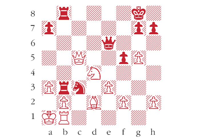Black to play. This position is from Gelfand–Kramnik, Berlin 1996. This is one of Kramnik’s finest finishes. Can you spot his amazing winning move? Answers to me at The Spectator by Tuesday 19 February or via email to victoria@spectator.co.uk. There is a prize of £20 for the first correct answer out of a hat. Please include a postal address and allow six weeks for prize delivery.