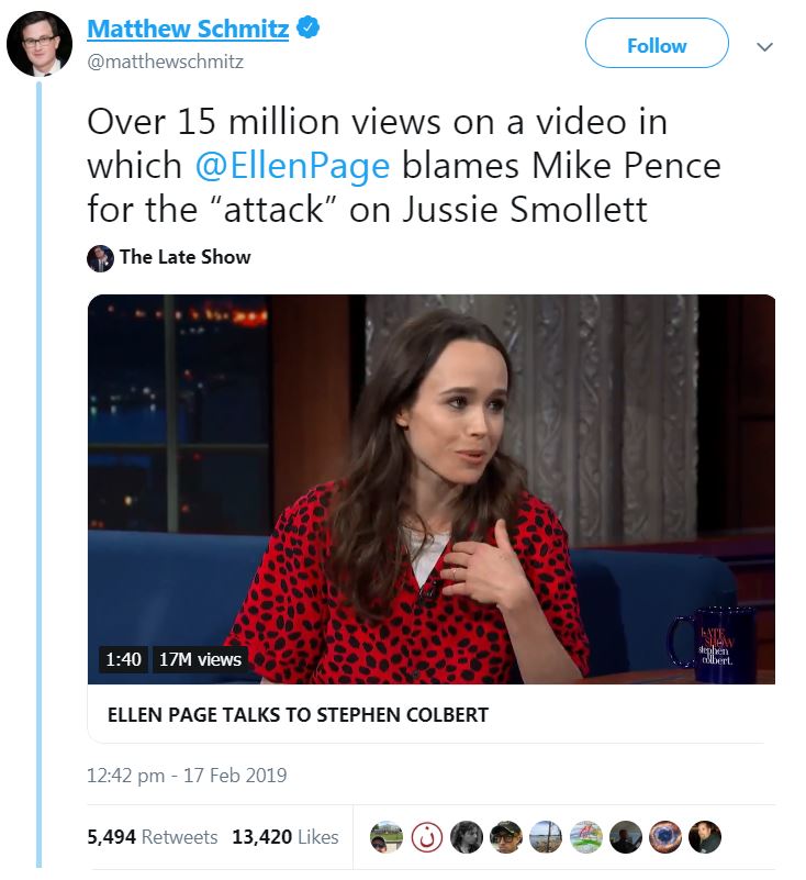 Appearing on the Stephen Colbert show, Ellen Page denounced US Vice President Mike Pence and, especially of his conservative stance against gay marriage, which she argued caused the attack.