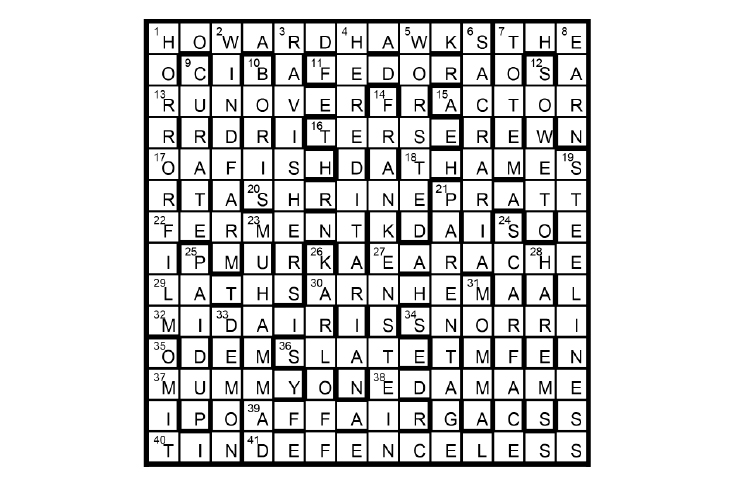 HORROR FILM (1D) ACTOR (15) BORIS (10) KARLOFF (26), né PRATT (21A) died on 2 February 1969. Most famous for THE (7A) MUMMY (37), he was also in HOWARD HAWKS (1A)’s SCARFACE (24).
